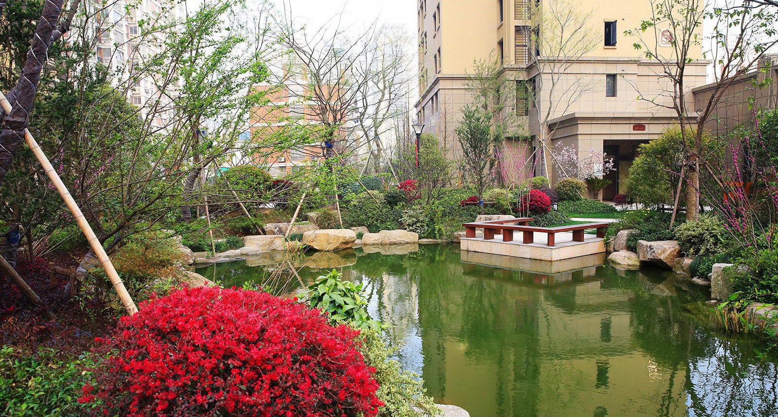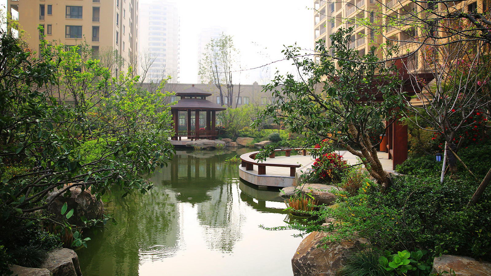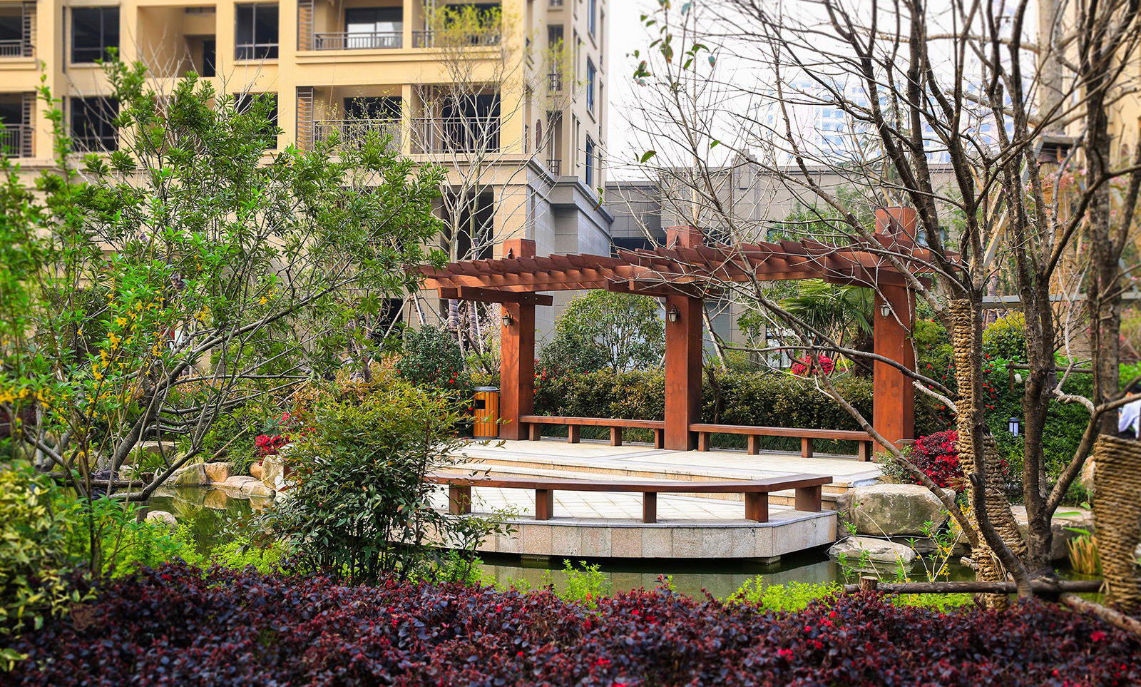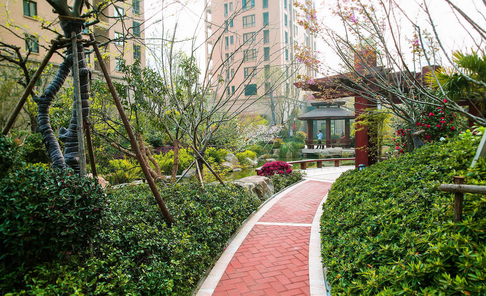 清新淡然,婉約的詩境里是對蕭山人日常生活的輕柔敘述。對學林尚苑的設計,再新古典的體系下,項目在其憑借天然的學區優勢,人文優勢定調蕭山都市學府之外,我們更需要給業主描繪的是一幅水逸江南的輕松生活氛圍,水脈即是文脈,精選的置石,亭、廊尺度相宜,特別是對植物的選樣上,更是一次次的優選,在自然的境界上更追求枝條的舒展度,生活之中花木扶蘇,人生境界自然從容。