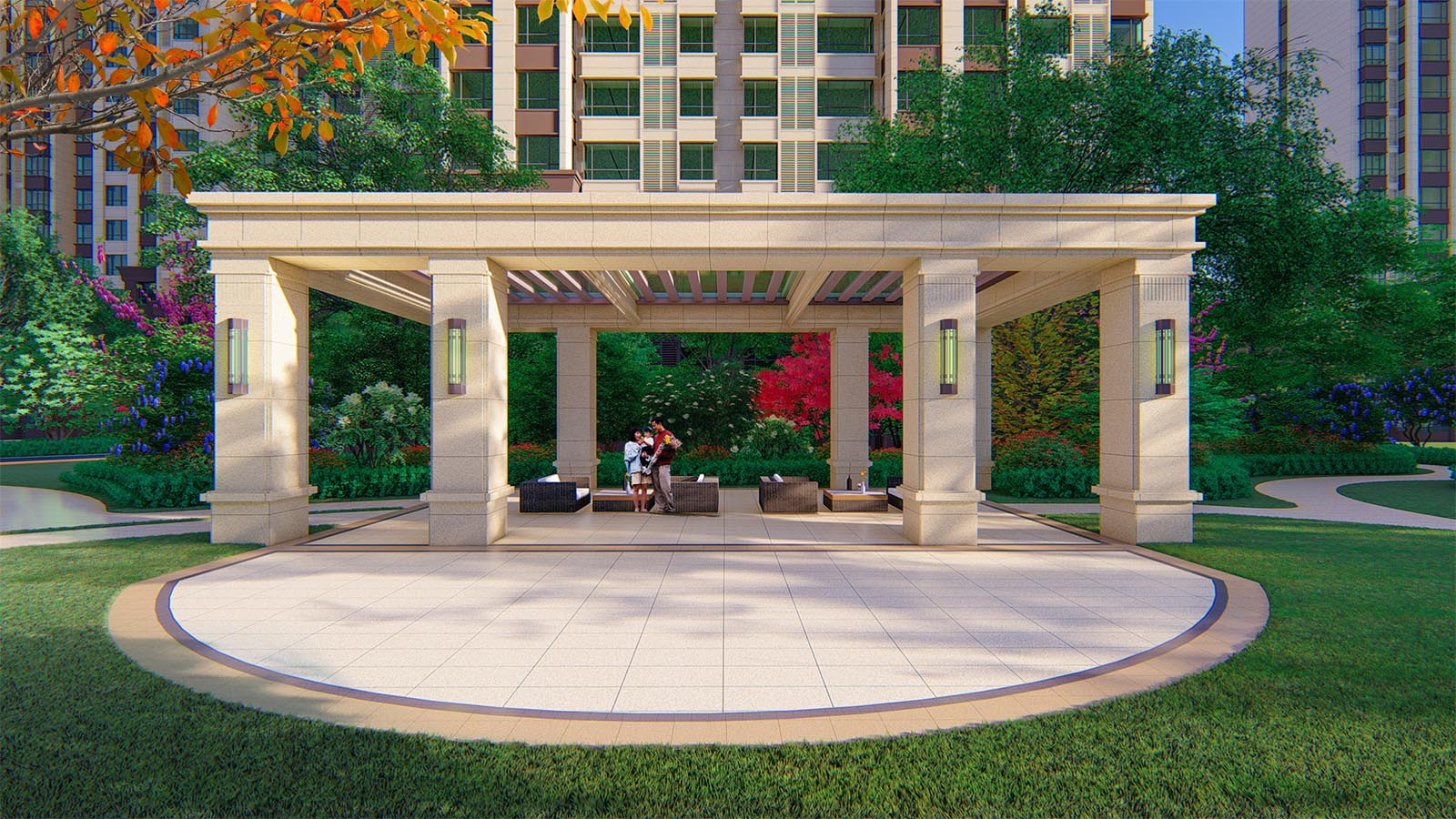有溫度的社區,尤其注重景觀的實用性,在地塊最中心的區域,設計提煉室外景觀會客廳的概念,讓景觀不單單只是一個簡單的構架,而是為居者日用的生活場所。