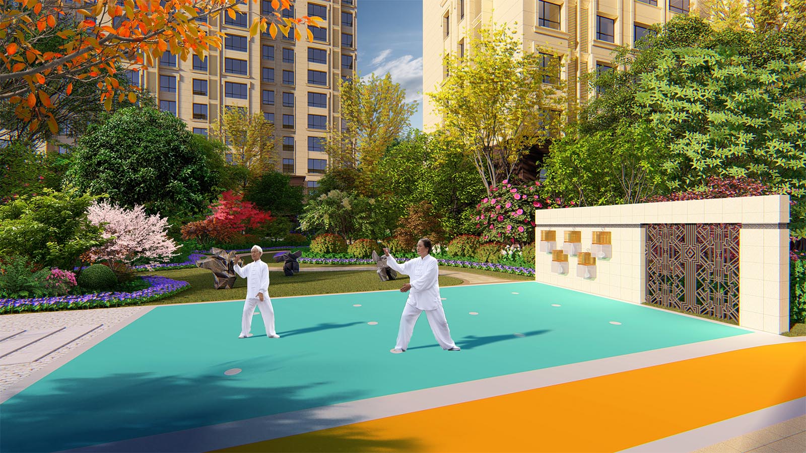 旨在創(chuàng)造一個(gè)完善的室外健身活動(dòng)區(qū),豐富整個(gè)社區(qū)的功能屬性,讓業(yè)主走出家門,享受健身、鍛煉的樂趣,并產(chǎn)生良好的景觀視覺效果。
