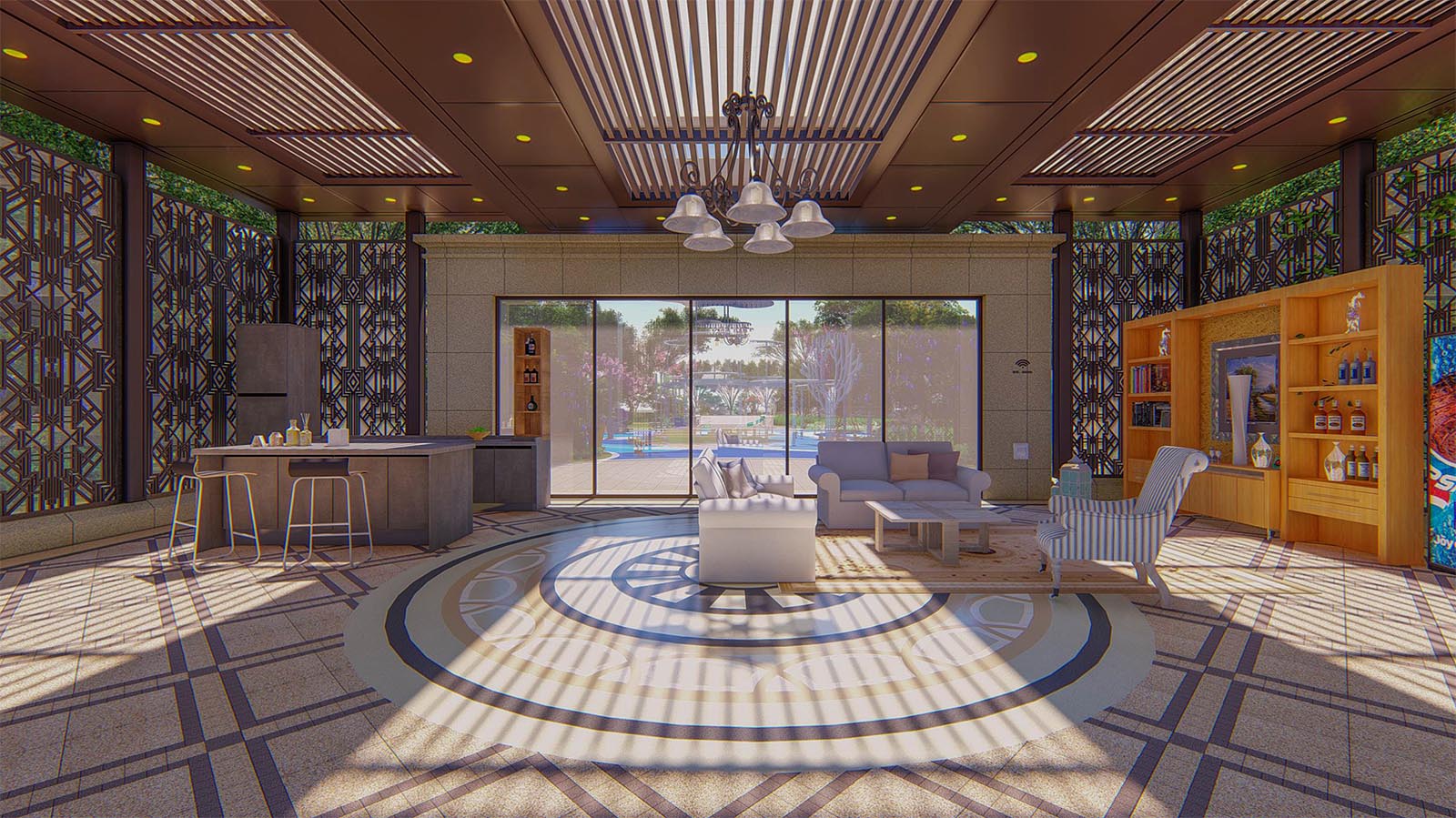 在地塊最中心的區(qū)域,設(shè)計(jì)提煉共享鄰里中心的概念,讓景觀不單單只是一個(gè)簡(jiǎn)單的構(gòu)架,而是為業(yè)主提供一個(gè)日用的生活場(chǎng)所。