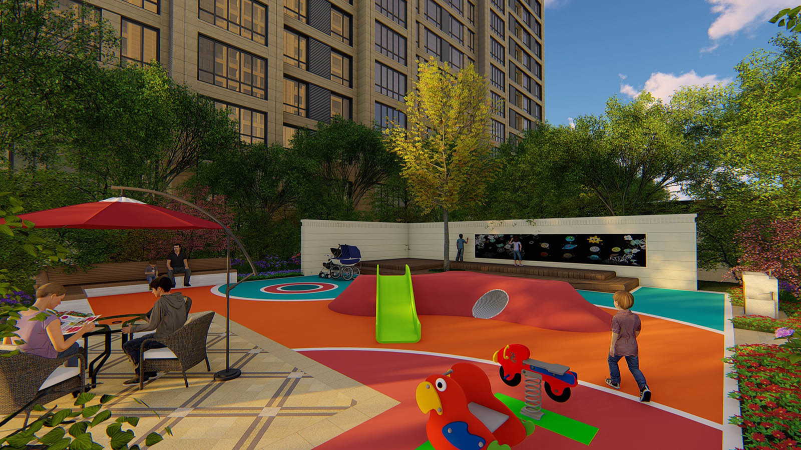 七彩童夢幼兒園主要包含“分班教學、寶玩英語、七彩跑道、戶外拓展、萌娃創客”五個活動區,以彩虹為景觀設計肌理,貫穿整個幼兒園,為蒙學兒童創造高水平早教兒童樂園,從孩子的視角出發,引導、啟發兒童智力發展,拓展孩子的想象力、動手能力及學習能力。