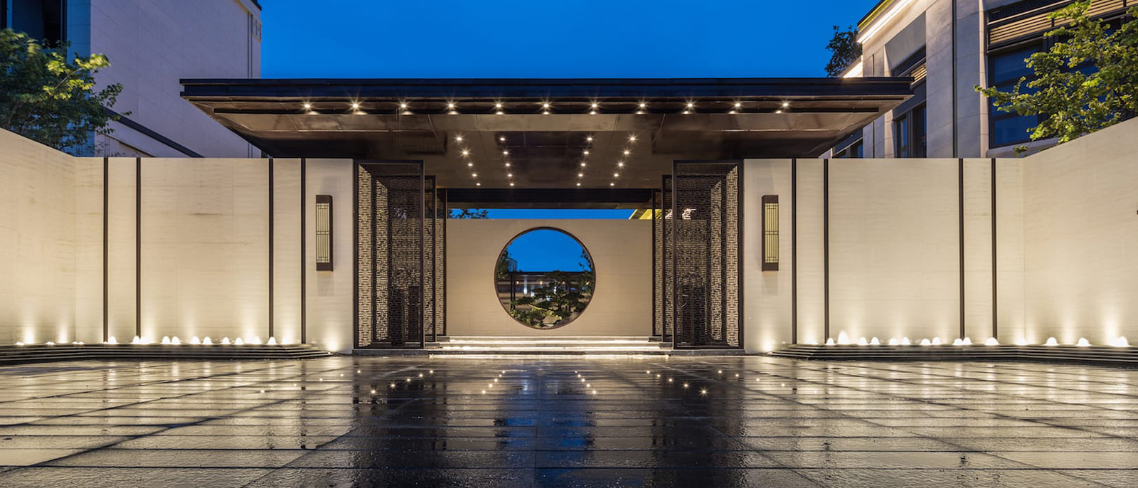 居者歸家,表現一個府系主題的入口,通常是厚重的。若想舉重若輕的傳達府園的高貴感,文化意境的融入和儀式感的空間轉換應不可或缺。